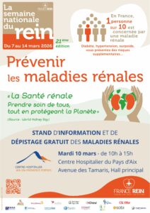 Semaine Nationale du Rein : dépistages gratuits, mardi 10 mars