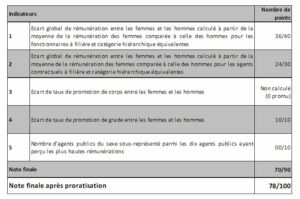 L’index prend la forme d’une note sur 100, dont le niveau cible est de 75 points, et est calculé chaque année pour l’année civile qui précède l’année de publication.
