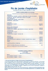 Tarifs 2025 d’hospitalisation en Médecine-Chirurgie-Obstétrique :